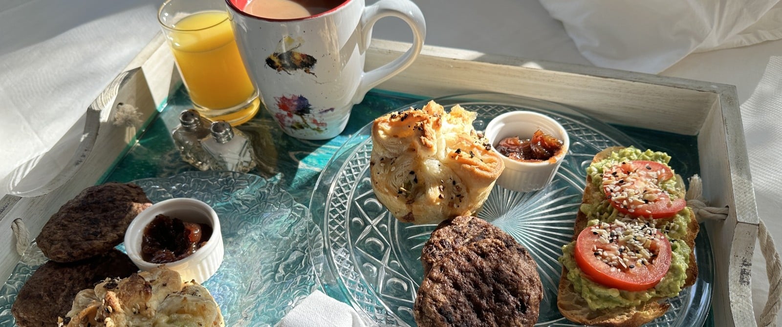 Guests select their breakfast from a menu that, in addition to a Daily Specialty, includes scrambled eggs, homemade yogurt, fresh fruit, avocado slices, avocado toast, and baked apples. And, of course, our signature homemade breads and jams.